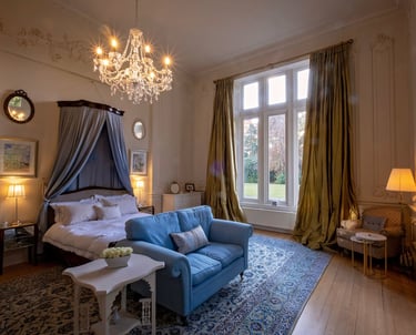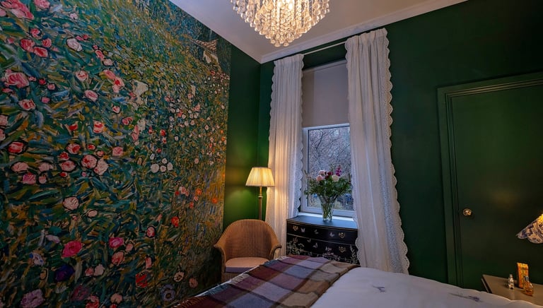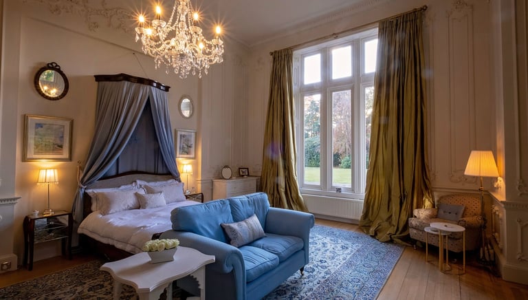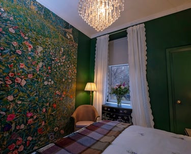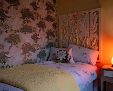 Cole & Son wallpaper and Colefax and Fowler fabric for classic elegance.